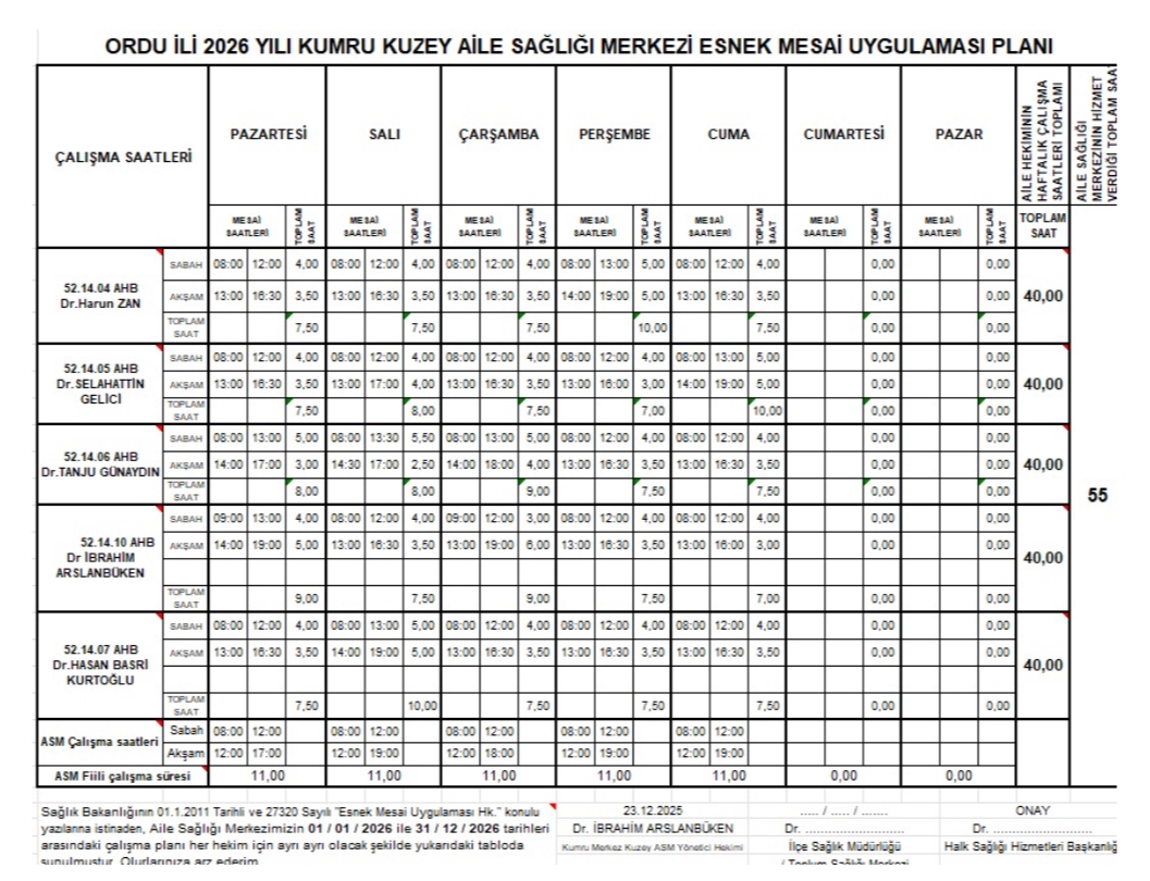 Aile Sağlığı Merkezimizde Görev Yapan Aile Hekimlerimizin Listesi İçin